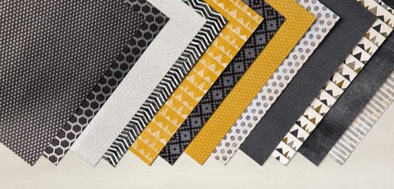 - Cut a 4-1/4″ x 2-1/2″ piece of Urban Underground Designer Series Paper. Place this piece a little to the left on the front of the base of the cards – leaving 1-1/4″ on the right side.