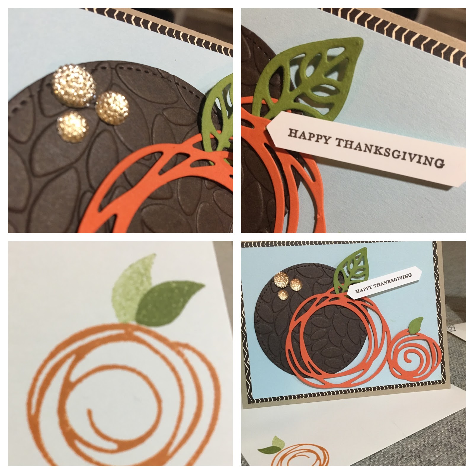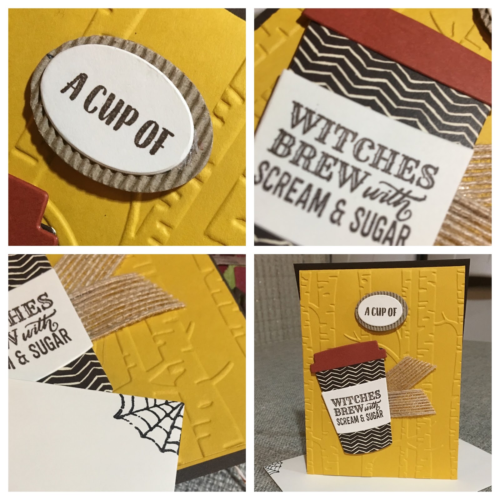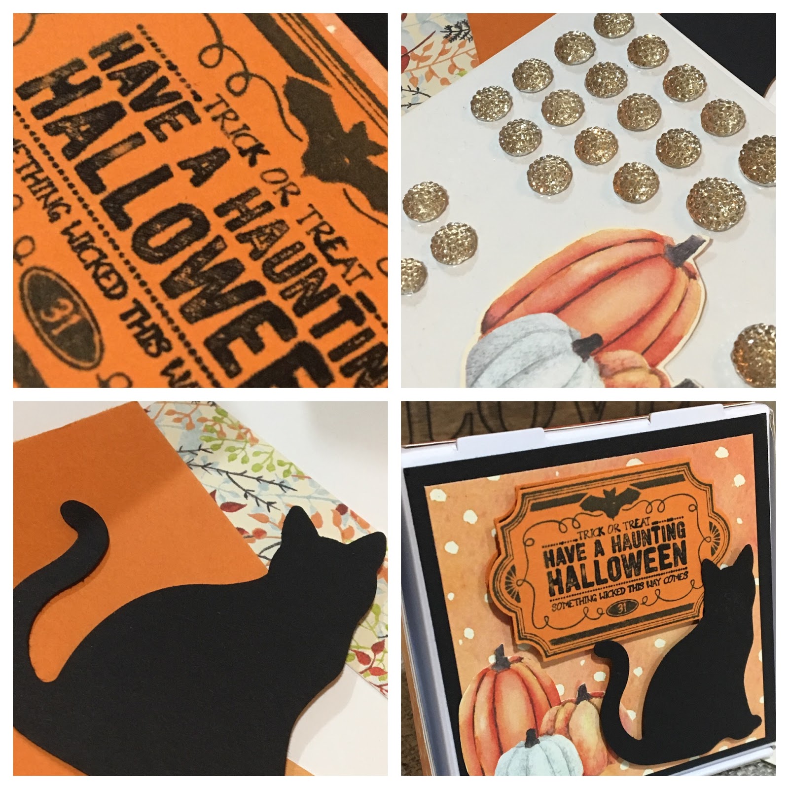 We made 4 projects last night. 3 cards and 1 treat box. It was based around Fall and Halloween theme.
