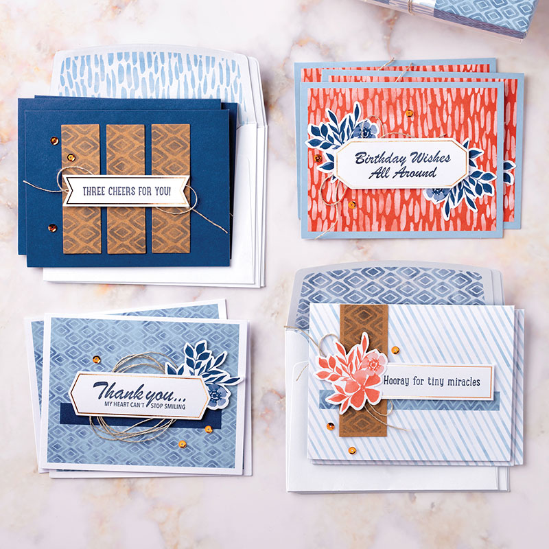 Create beautiful all-occasion cards in minutes using the Stampin’ Up! Three Cheers for You Card Kit. This kit is perfect for new crafters, busy crafters, or crafters on the go. It’s one of our all-inclusive project kits, so everything you need is inside the box!** This fun DIY card kit makes a great gift for crafters or aspiring crafters. Complete using your choice of adhesive.