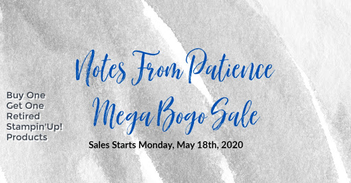 I am happy to announce that I have a new Facebook group starting up. It will be specifically for Retired Stampin’Up! Products. It is called Notes From Patience Mega BOGO. I have collected quite a bit of extras here in my craft space and now you will be able to reap the benefits of me DE-STASHING (is that a word) my stash.