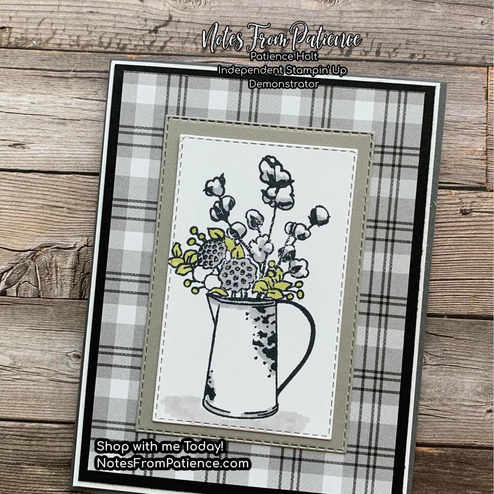 Fall is in the air and I am loving it. I like to collect a few antiques and one of them is a water pitchers. I have a few glass ones but I am always on the look out for that perfect old enamel pitcher. Today, my card is from the Country Home stamp set. I have used it before but not nearly as much as I should have.