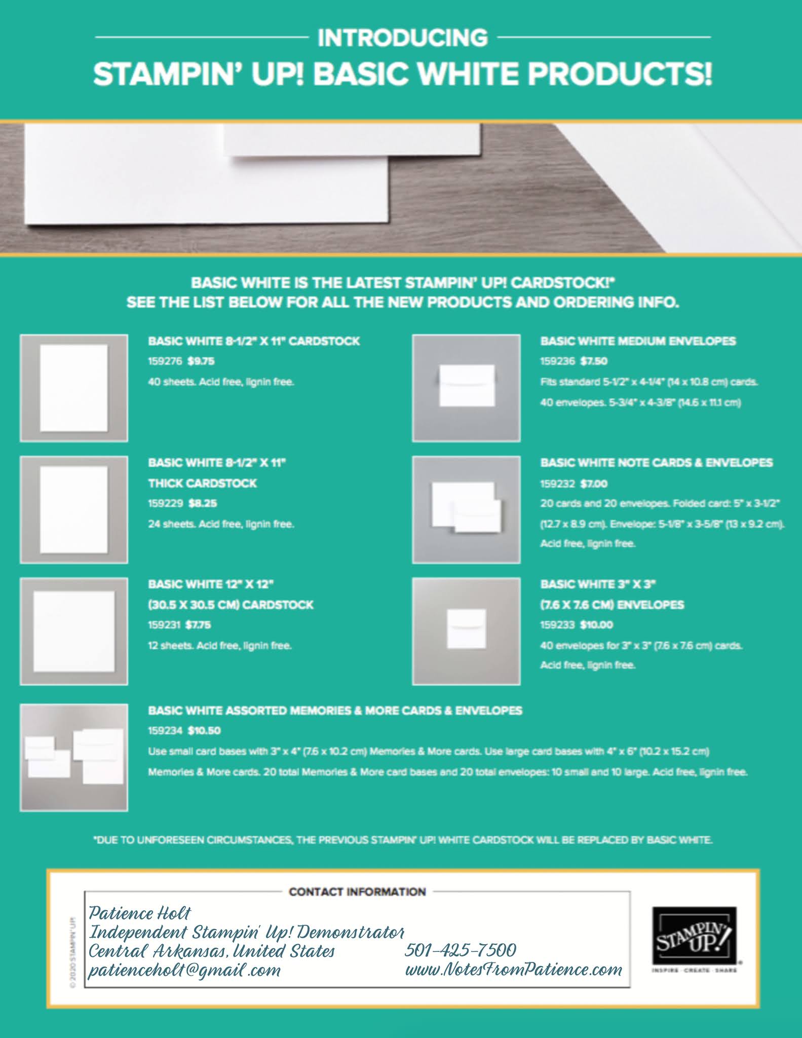 You may remember I shared news about the Stampin’ Up! Whisper White products being discontinued due to the paper mill closure. The New “Basic White” is the new line of products now available to replace Whisper White!