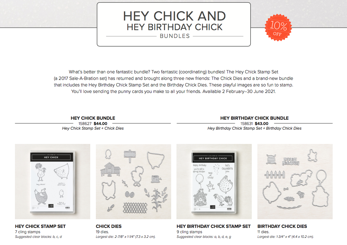 Hey Chick & Hey Birthday Chick Bundles. Not only is Stampin’ Up! bringing back Hey Chick, a super-popular Sale-a-Bration offering from 2017, but they are adding a set of must-have dies that you are going to want in your craft room. In addition, they’re going to offer a set of dies that coordinate with the new Hey Birthday Chick stamp set. Beginning today – February 2nd!