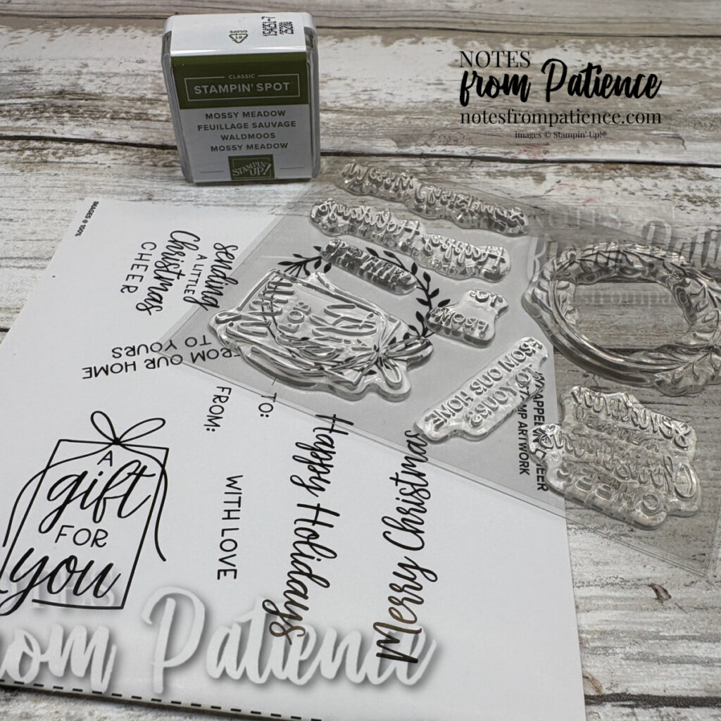 The November kit included everything needed to create the gift boxes and tags including the exclusive Wrapped In Cheer stamp set, a Mossy Meadow Stampin’ Spot and all of the adhesives!