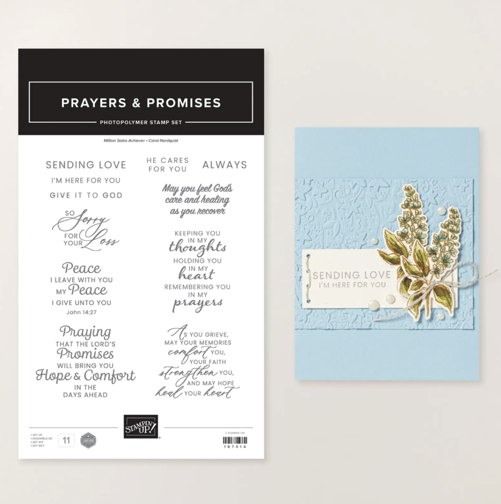 Share words of faith and encouragement with the Prayers & Promises Stamp Set. It features messages of sympathy, love, and support to help you create comforting cards for those who need them most.