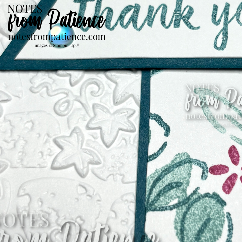 This is a Two-Step Stampin’ set; it allows you to layer two or more images to create one final image with extra texture and dimension in the colors you want.