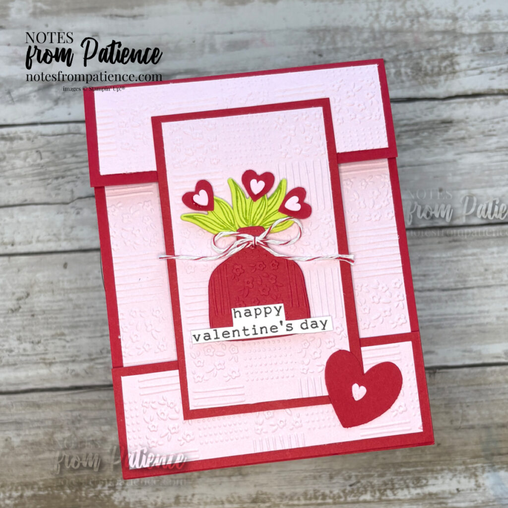 Hello! Welcome to my blog today. February is for Valentines and today is for Show & Tell. I am posting several cards that have been made over the last month and I am almost ready to mail them out this next week!. Stampin’ Up! has made it EASY to create with the Endless Love Bundle and Made with Love Suite of Products. Don’t miss out and get them before they are gone. You can find them on page 31 of the Jan-Apr Mini Catalog Okay, well, the bag itself is a product from Stampin’ Up!’s Jan-Apr Mini Catalog. Page 31 is where you can find this lovely bag and lots of other fabulous things to coordinate with it.