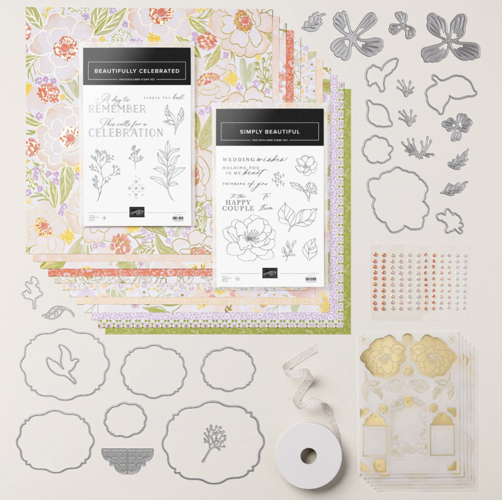 Create stunning wedding and celebration crafts with the Lovely & Beautiful Suite Collection, featuring watercolor floral stamps, delicate foliage, and gold accents. This collection includes two stamp and die bundles, offering seamless coordination between the pieces to effortlessly layer and embellish your cards and scrapbooks. With heartfelt wedding and congratulations sentiments, these designs will add a refined, personal touch to every project. Add ink, card stock, and adhesive to complete your projects.